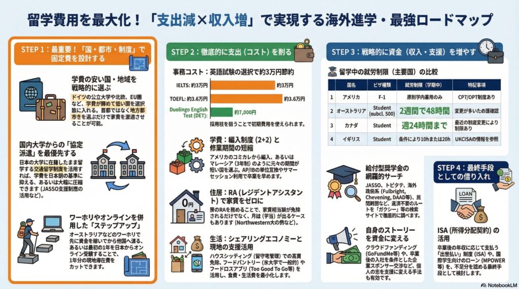 - 👉 留学コスト削減方法編(Aを徹底解説)